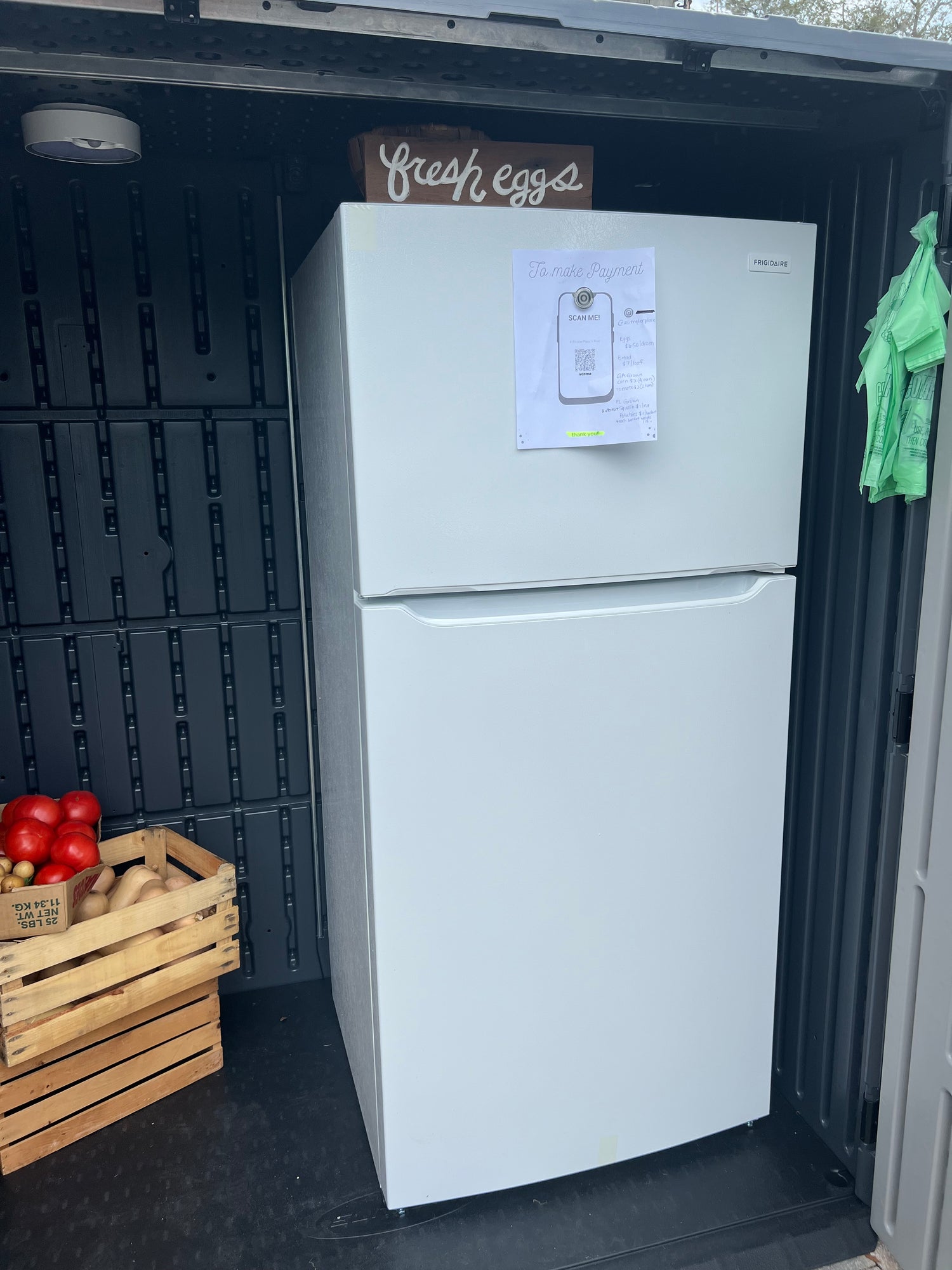 Inside the shed you’ll find a refrigerator/freezer. We’ll place your cold items in the fridge for easy pick up. Be sure to check the freezer if you’ve ordered anything frozen.